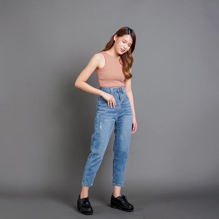 Promo [LUXE.DLABEL]-C54 Jeans | Celana Panjang Jeans Highwaist wanita Boyfriend Jeans Wanita waist - Biru S Elegan