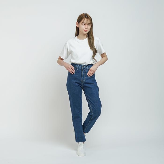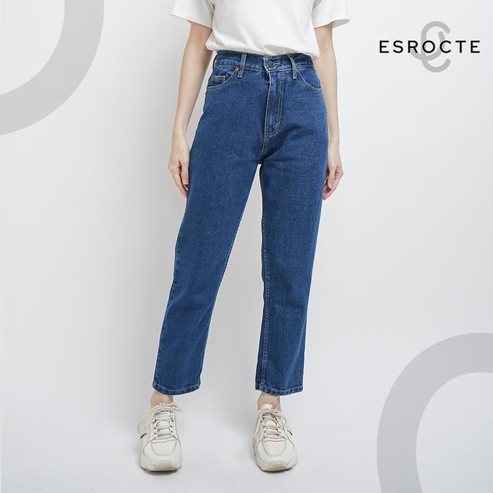 Promo ESROCTE Celana Panjang Rubber/Karet Boyfriend High Waist Mom Jeans Wanita/Cewek P43 - Navy 26-38 - Navy 28 Elegan