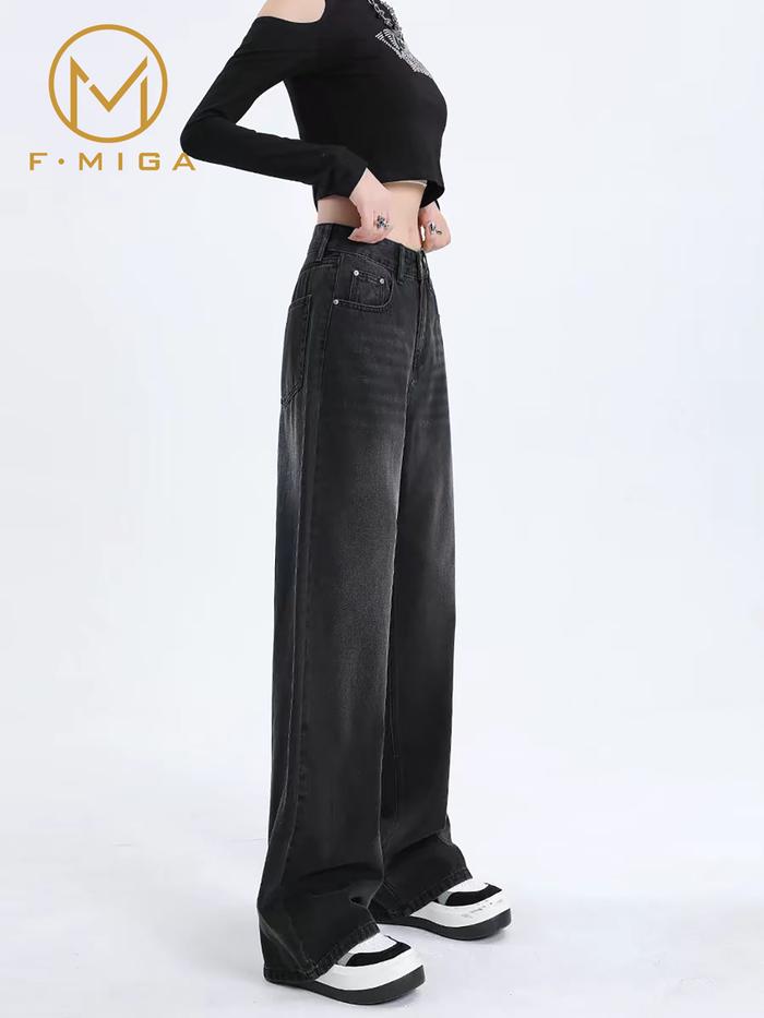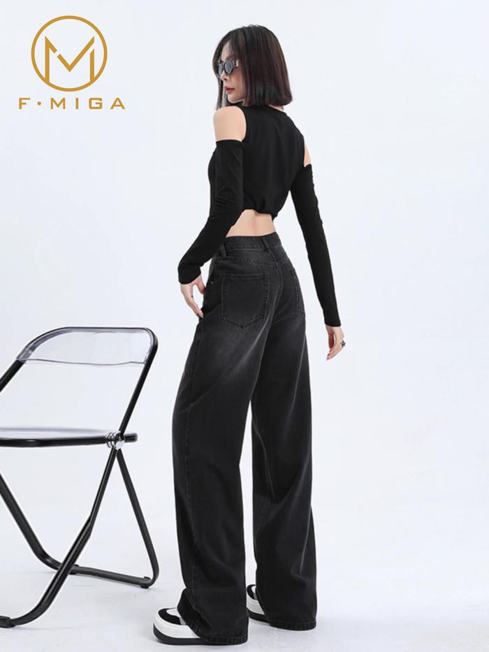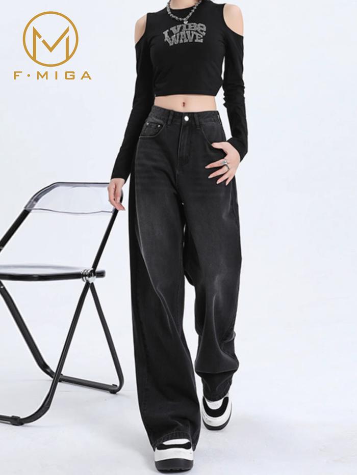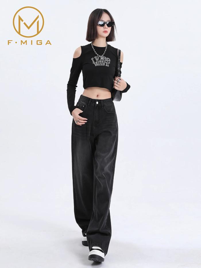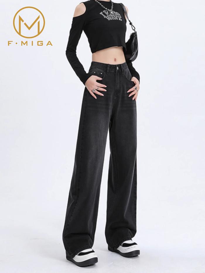Murah F·MIGA C105 Celana Jeans Wanita High Waist Celana Jeans Panjang Wanita Korean - Hitam - Hitam M Keren