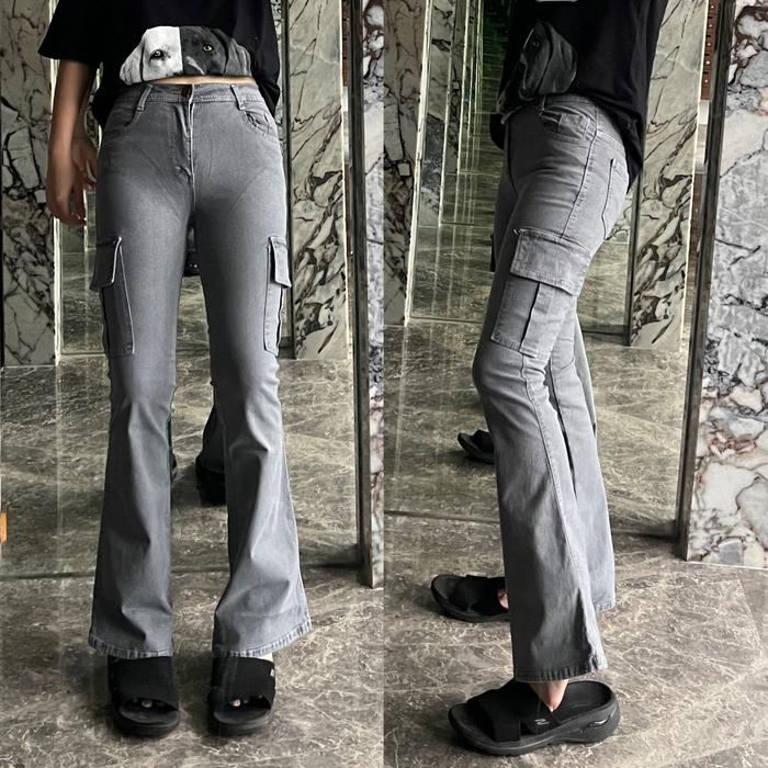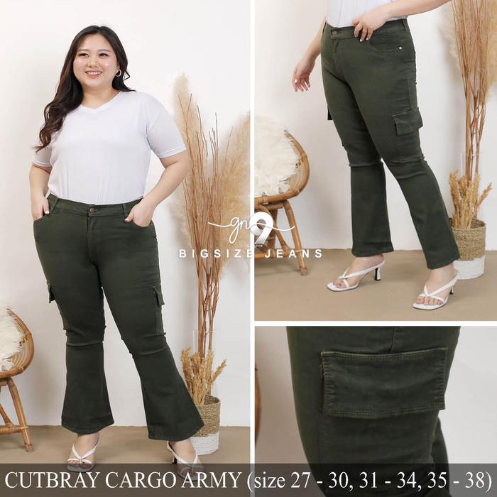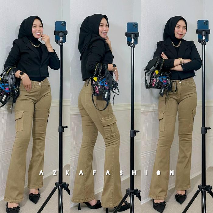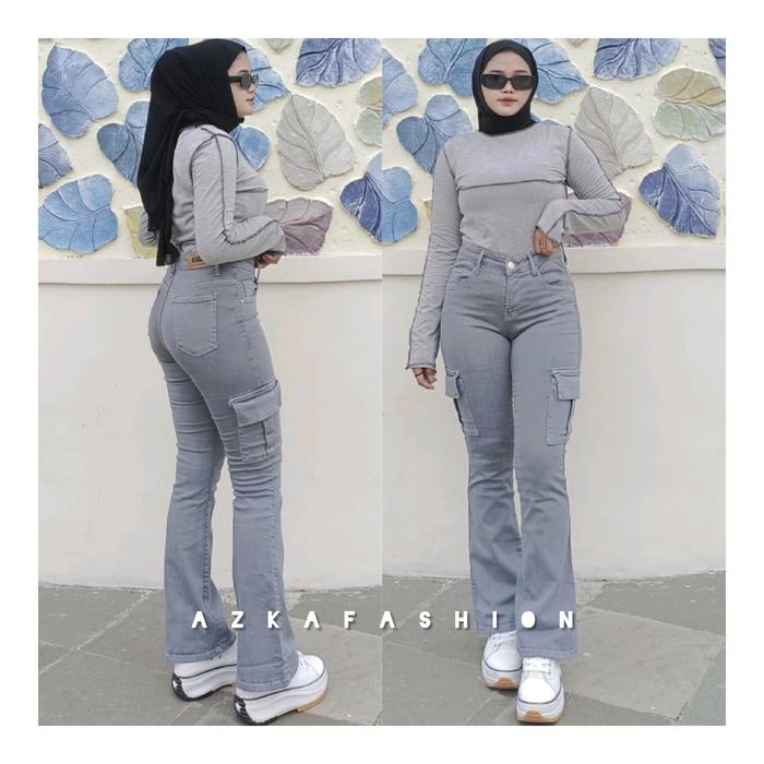 Terlaris Azka - celana jeans cutbray cargo wanita Softjeans Stretch Panjang Size 27-38 - 4bu 4bu 27 Keren