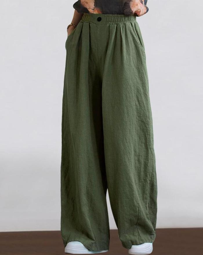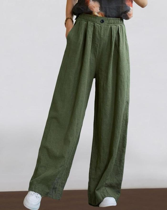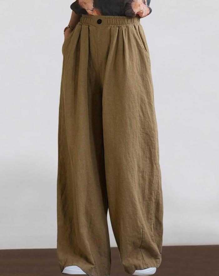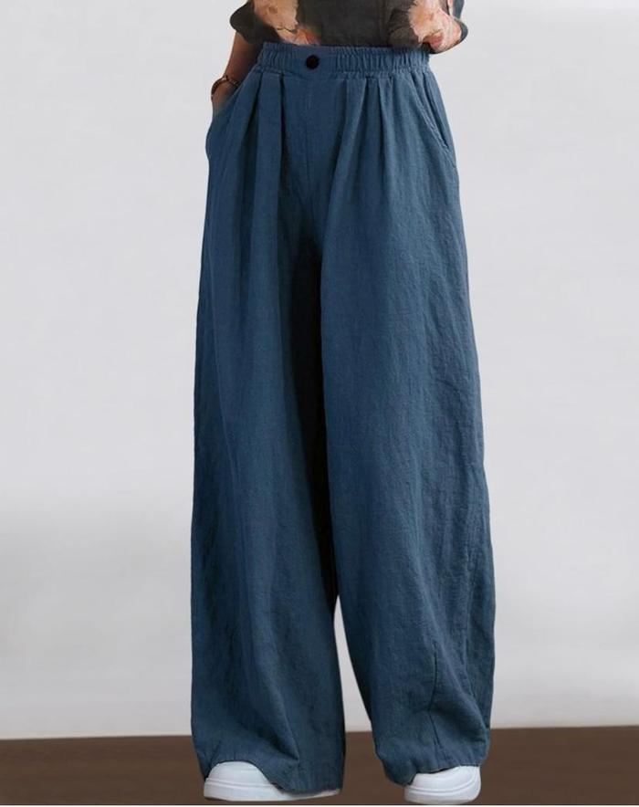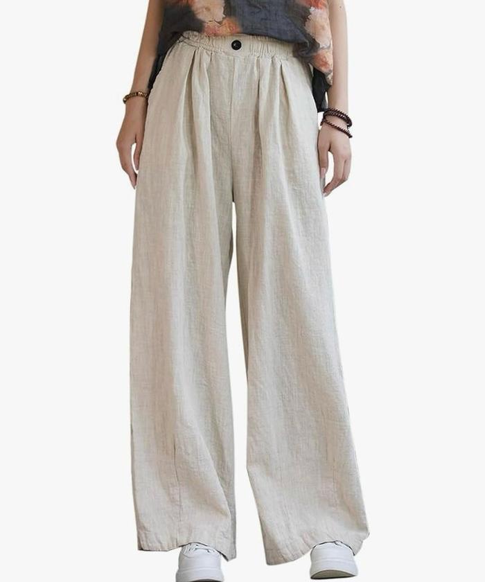 Promo celana kulot linen rami premium highwaist pinggang full karet /dilengkapi kancing di depan - bw Keren
