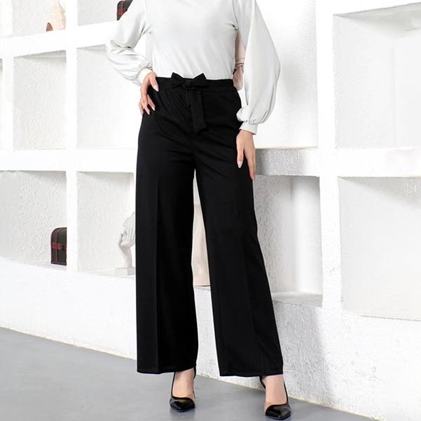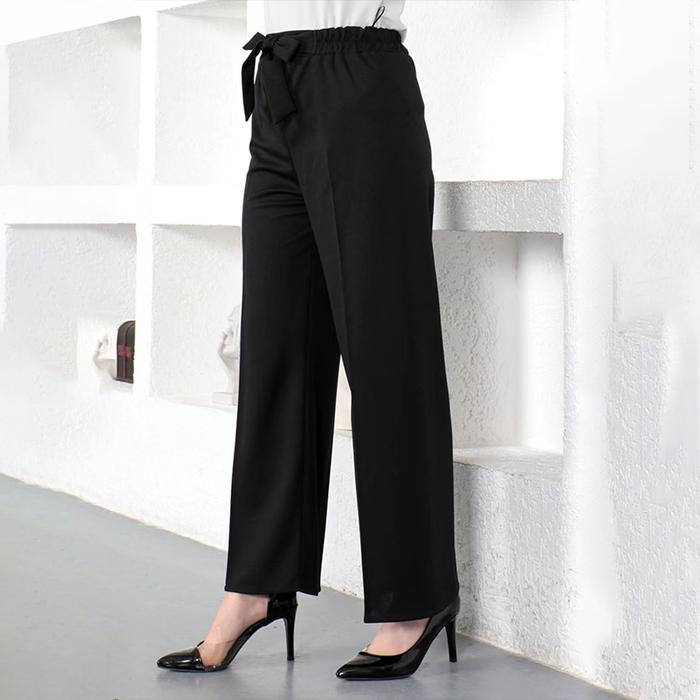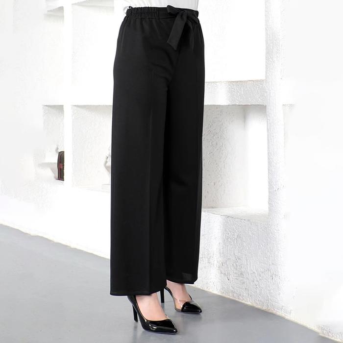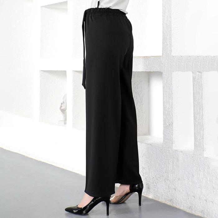 Murah GDTIMA Celana Highwaist Wanita Pinggang Elastik Straight Pants Celana Hitam - black S Elegan