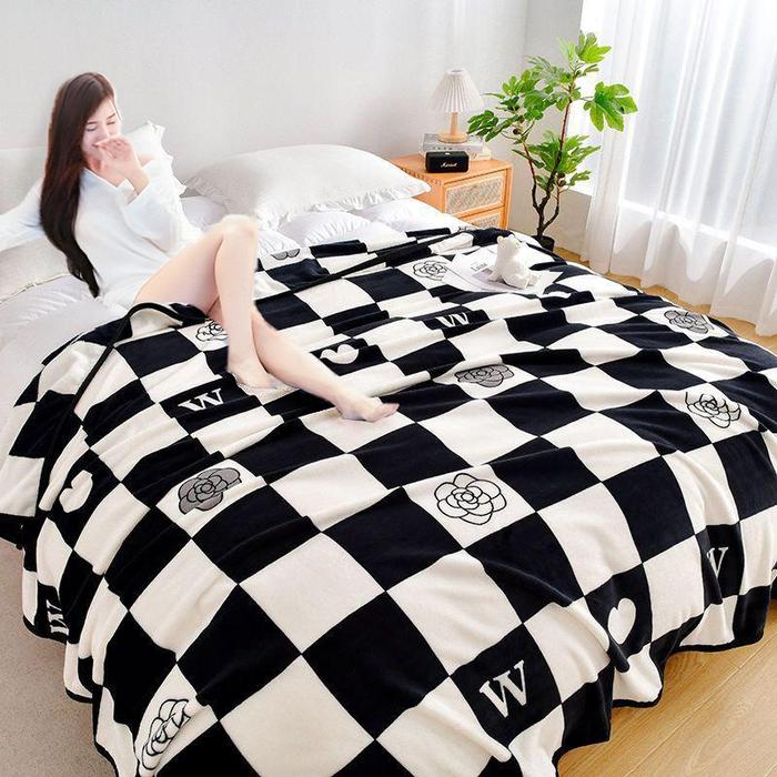 Murah Selimut Bulu Halus KING 180x200 List Motif Catur Murah Berkualitas Kado Kain - coklat Keren