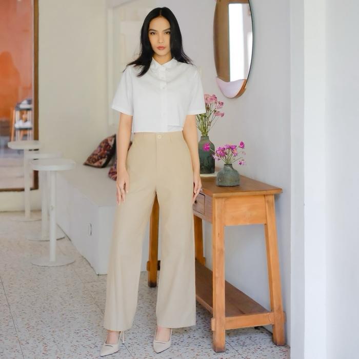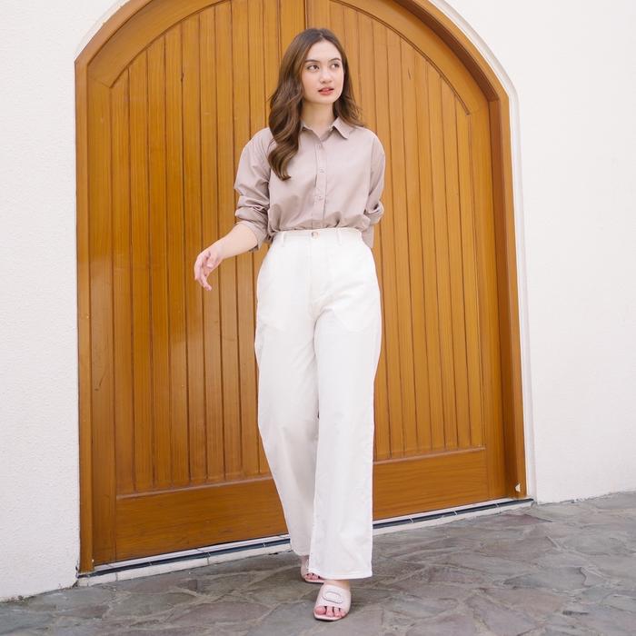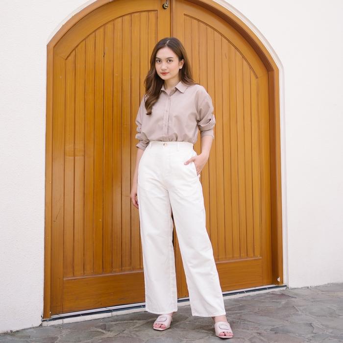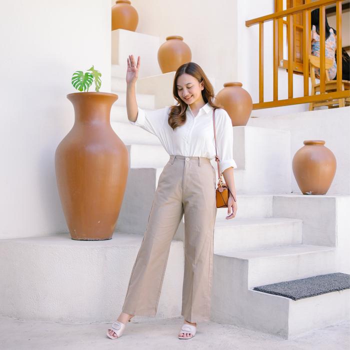 Terlaris Casual Culotte Zipper - Celana Panjang Basic Linen Wanita Kulot Kain - Broken white + furing L Keren