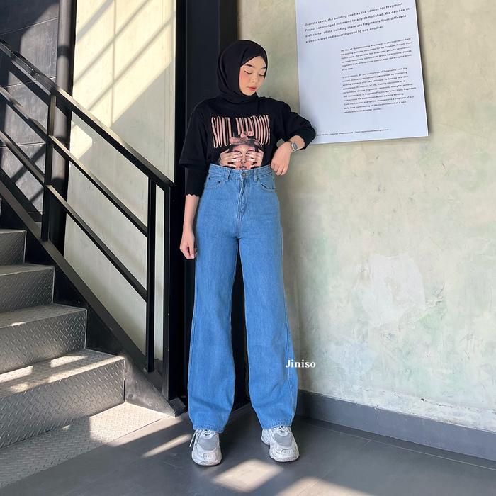 Terlaris JINISO HANGOVER - 815 Loose Highwaist Celana Jeans Wanita Warna Medium Blue - 28 Elegan