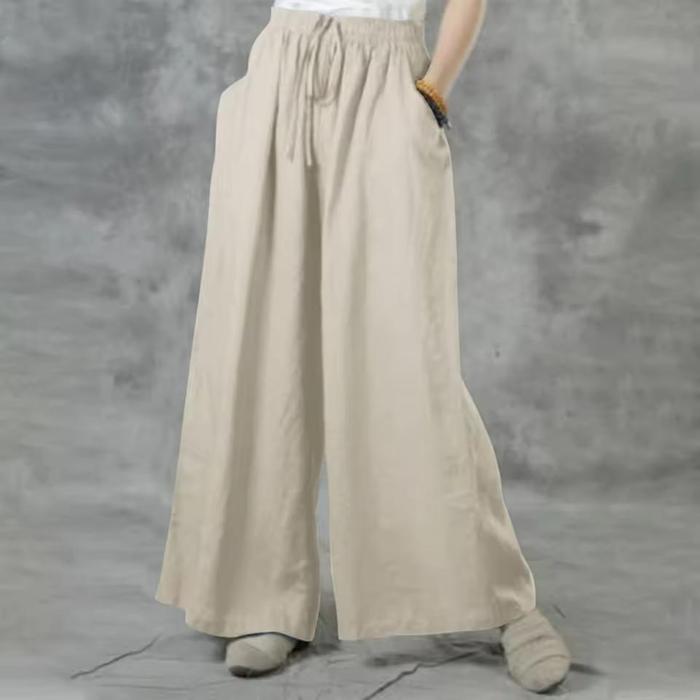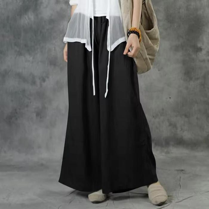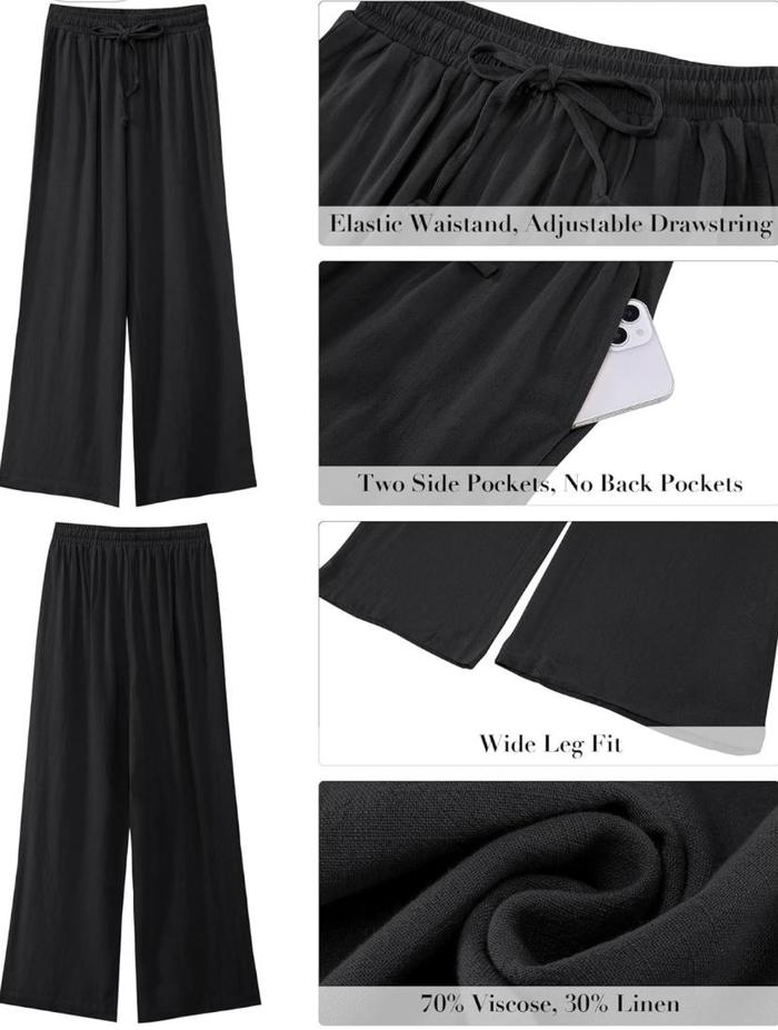 Murah celana kulot linen rami high waist premium model basic simple pinggang full karet - hitam all size Keren