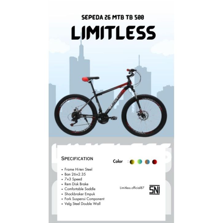 Sepeda -ung MTB 26" Limitless TB-500 - 21 Speed (Bonus Tas)