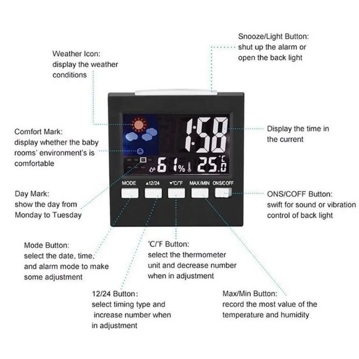 TERBARU jam meja digital smart alarm clock jam weker digital weather station termometer higrometer thermometer