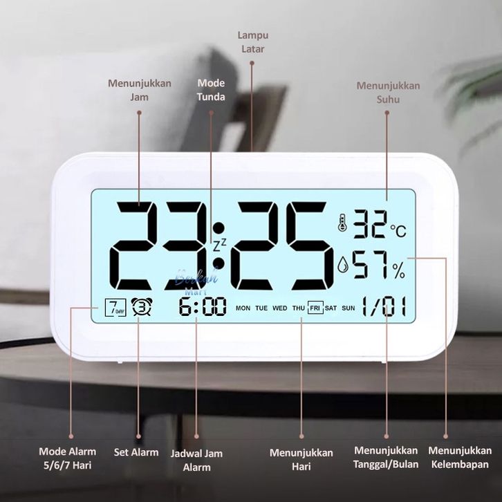 NEW Arrival Smart Digital Clock Jam Alarm Weker Dengan Lampu LED Backlight Menunjukkan Waktu Tanggal Hari Suhu