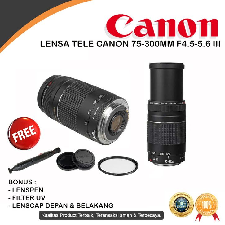 LENSA TELE CANON 75-300MM F4.5-5.6 III BONUS LENSPEN & FILTER - LENSA CANON ORIGINAL