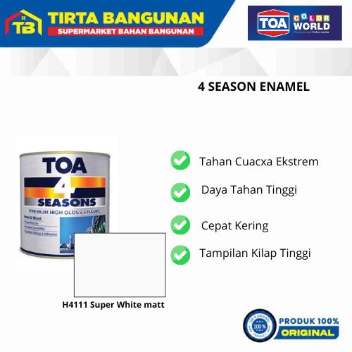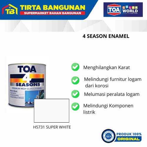 Promo TOA 4 SEASON PREM HIGH GLOSS ENAMEL / CAT KAYU & BESI READY MIX 0.9 LT - 5731 SUPER WHIT Keren