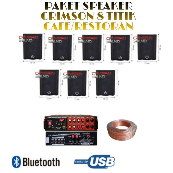 PAKET SOUND SPEAKER CRIMSON 8 TITIK CAFE/RESTORAN AMPLI BLUETOOTH GARANSI