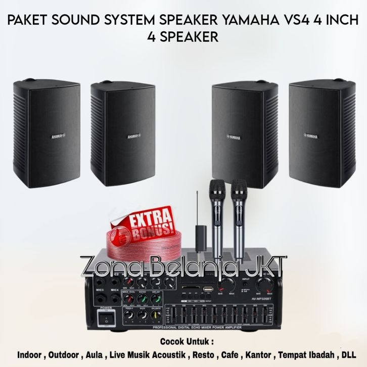 PAKET SOUND SYSTEM CAFE RESTO KANTOR SEKOLAH KLINIK KARAOKE SPEAKER YAMAHA VS4 4 INCH 4 SPEAKER AMPLIFIER USB BLUETOOTH