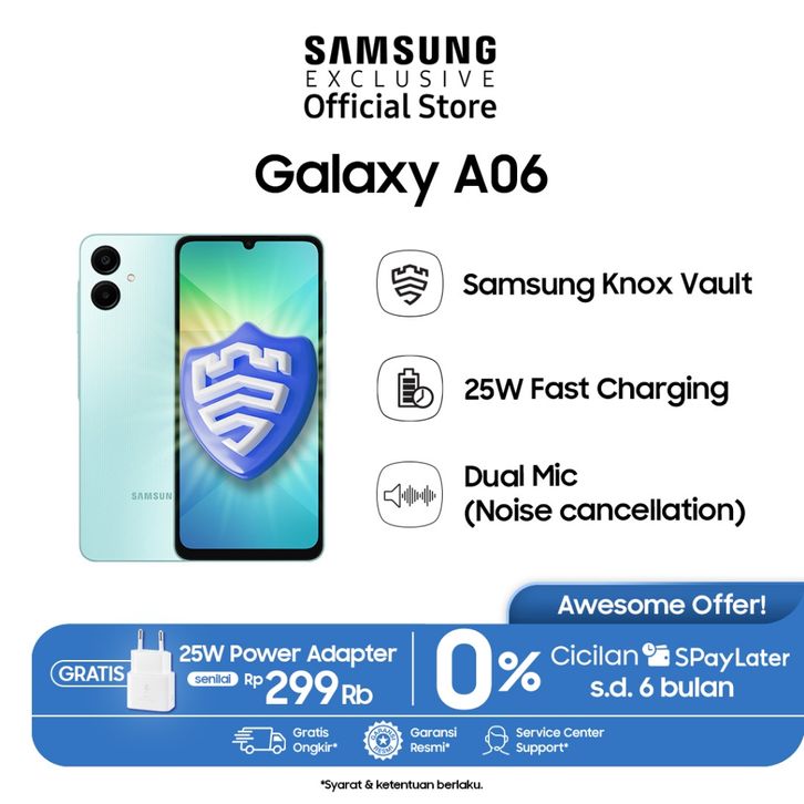 Hp Handphone Samsung Galaxy A06 LTE 6/128GB - Light Green | Baterai 5.000 mAh | 25W Fast Charging