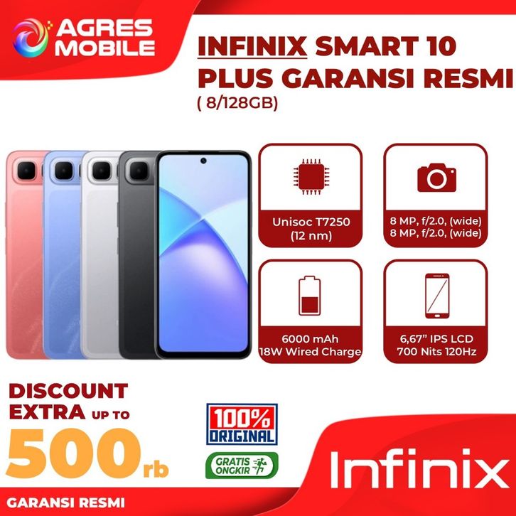 Hp Handphone Infinix Smart 10 Plus 8/128GB Up to 16GB Extended RAM - Garansi Resmi