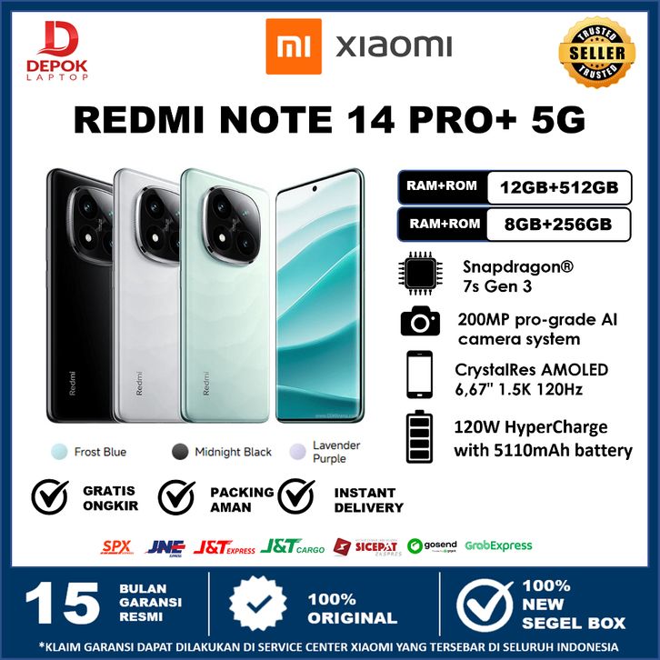 Hp Handphone Xioami Redmi Note 14 Pro+ 5G 12/512GB - NFC - 6,67" Amoled 120Hz - Garansi Resmi Xiaomi Indonesia