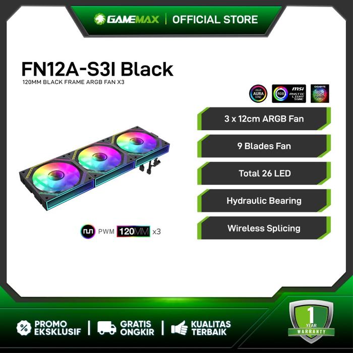 Gamemax FN12A-S3I Cooling Fan - BLACK