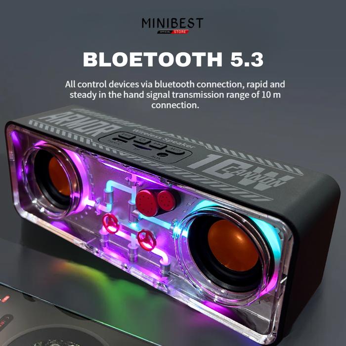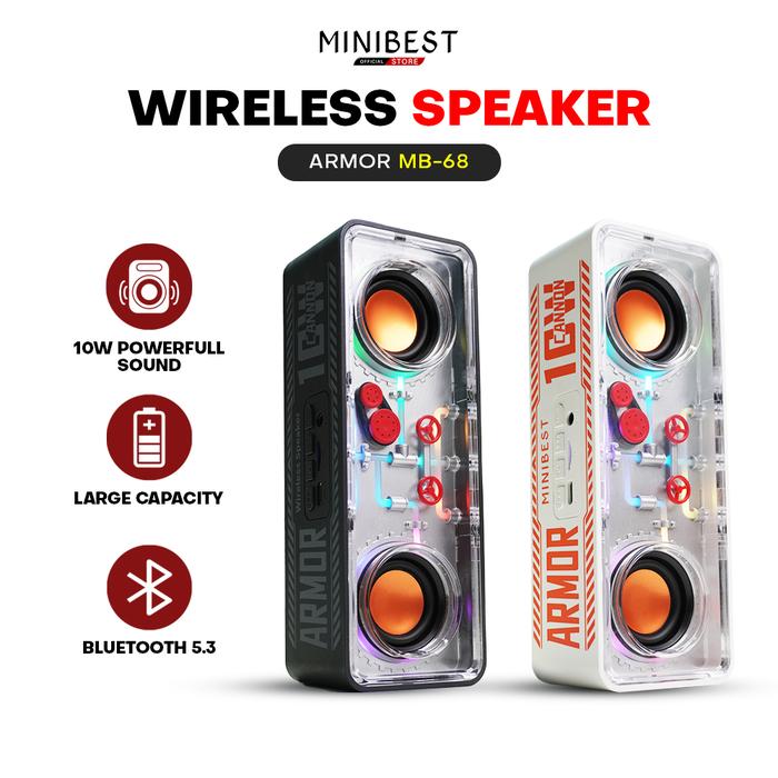Terlaris MINIBEST MB68 Armor Speaker Wireless Warframe Bluetooth 10W Powerful Sound Portable Bass - MB-68 Hitam Elegan