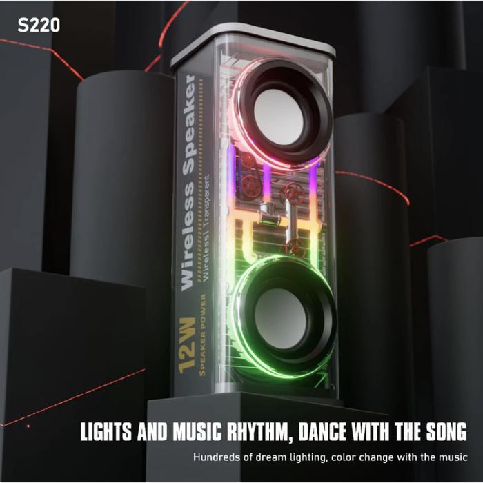 Promo LENYES Speaker Bluetooth S220 V5.3 Transparan With RGB Lighting 12W TWS WIRELESS - Hitam S220 Elegan