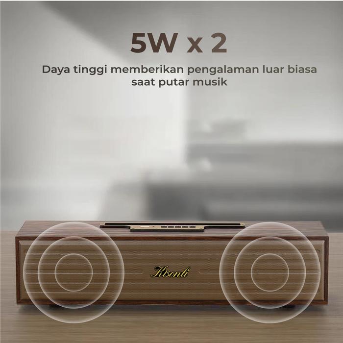 Terlaris KISONLI - Speaker Bluetooth Retro Klasik Bahan Kayu Asli Memiliki Phone Holder G-11A - Red Keren