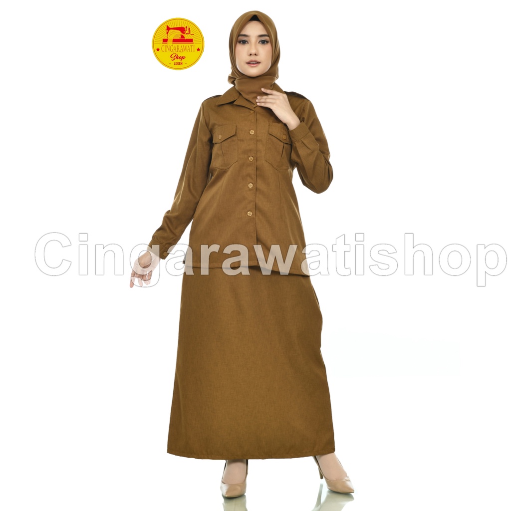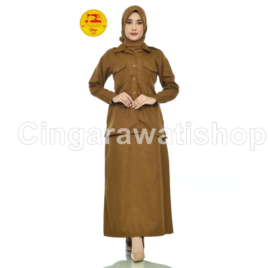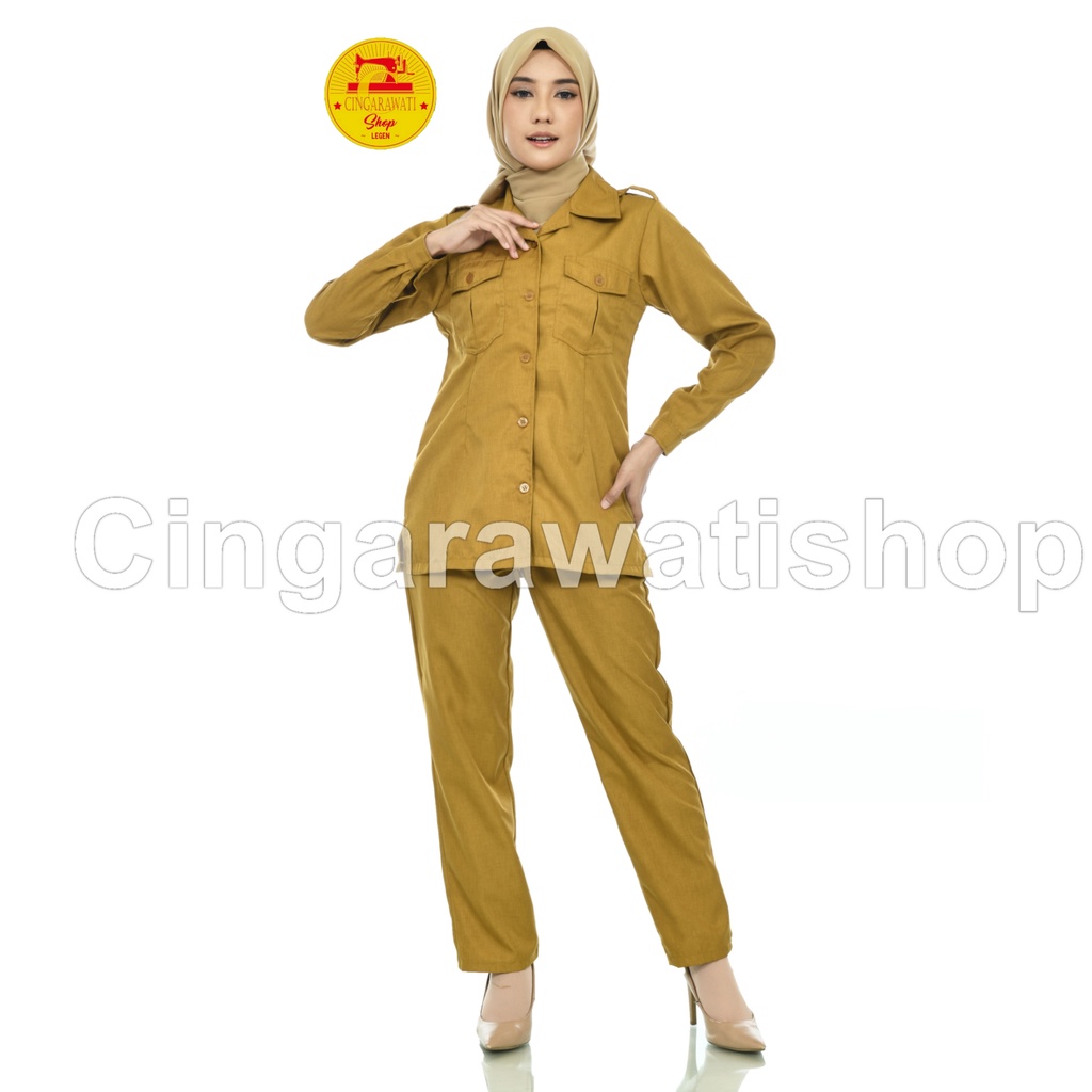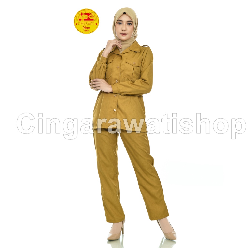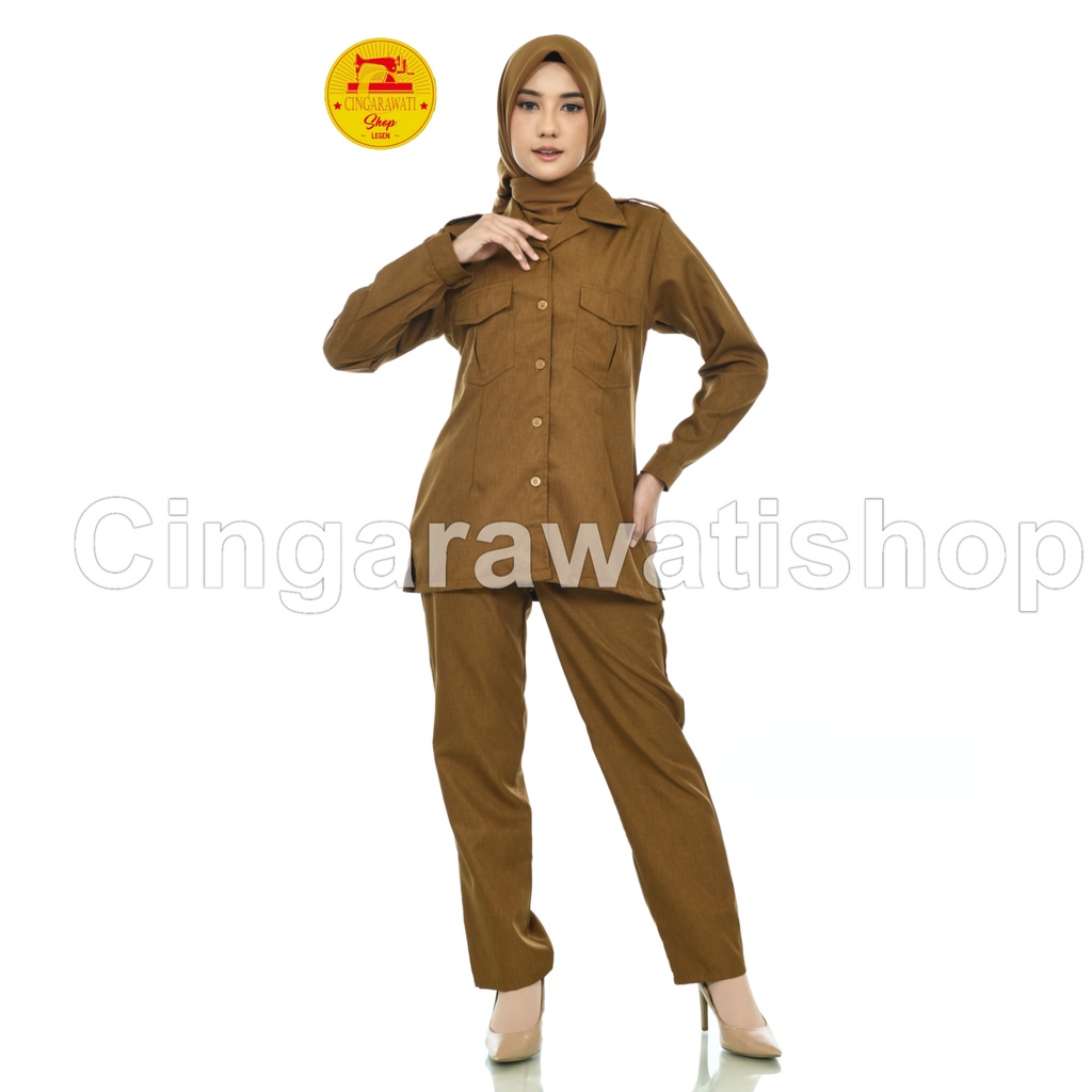 SERAGAM KHAKI PNS WANITA BAJU DINAS PEMDA WANITA SERAGAM PNS WANITA SETELAN PNS WANITA SAKU ATAS TERBARU