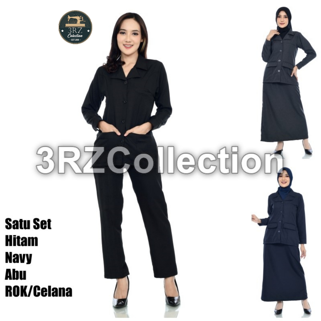 BAJU SETELAN ABU TUA SERAGAM BLAZER HITAM ABU NAVY WANITA ATASAN BAWAHAN ABU TUA HITAM NAVY
