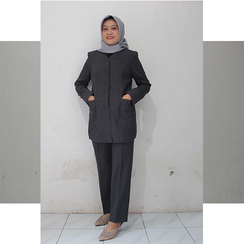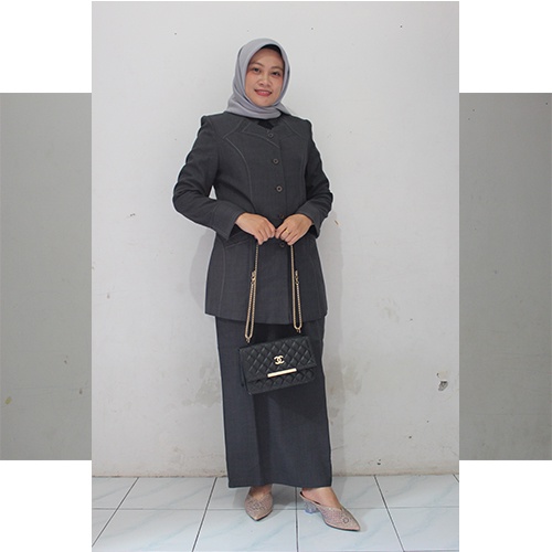BLAZER ABU TUA 696 SETELAN ROK DAN CELANA-SERAGAM GURU DAN PNS-PAKAIAN PEMDA TERBARU-BLAZER TERBARU