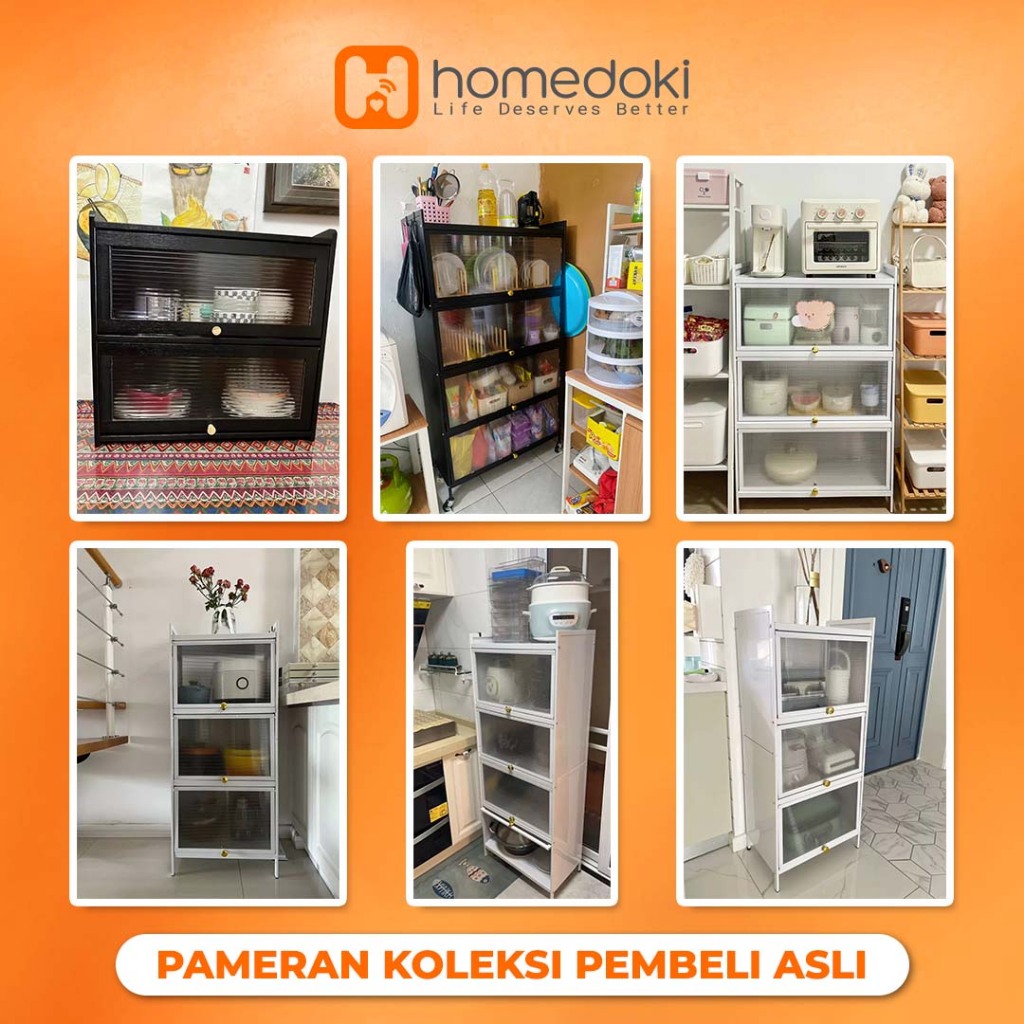 [Mall] RAK PIRING MINIMALIS MODERN HOMEDOKI KACA KERAMIK TERTUTUP SERBAGUNA LEMARI DAPUR BESI STAINLESS ALUMINIUM MURAH