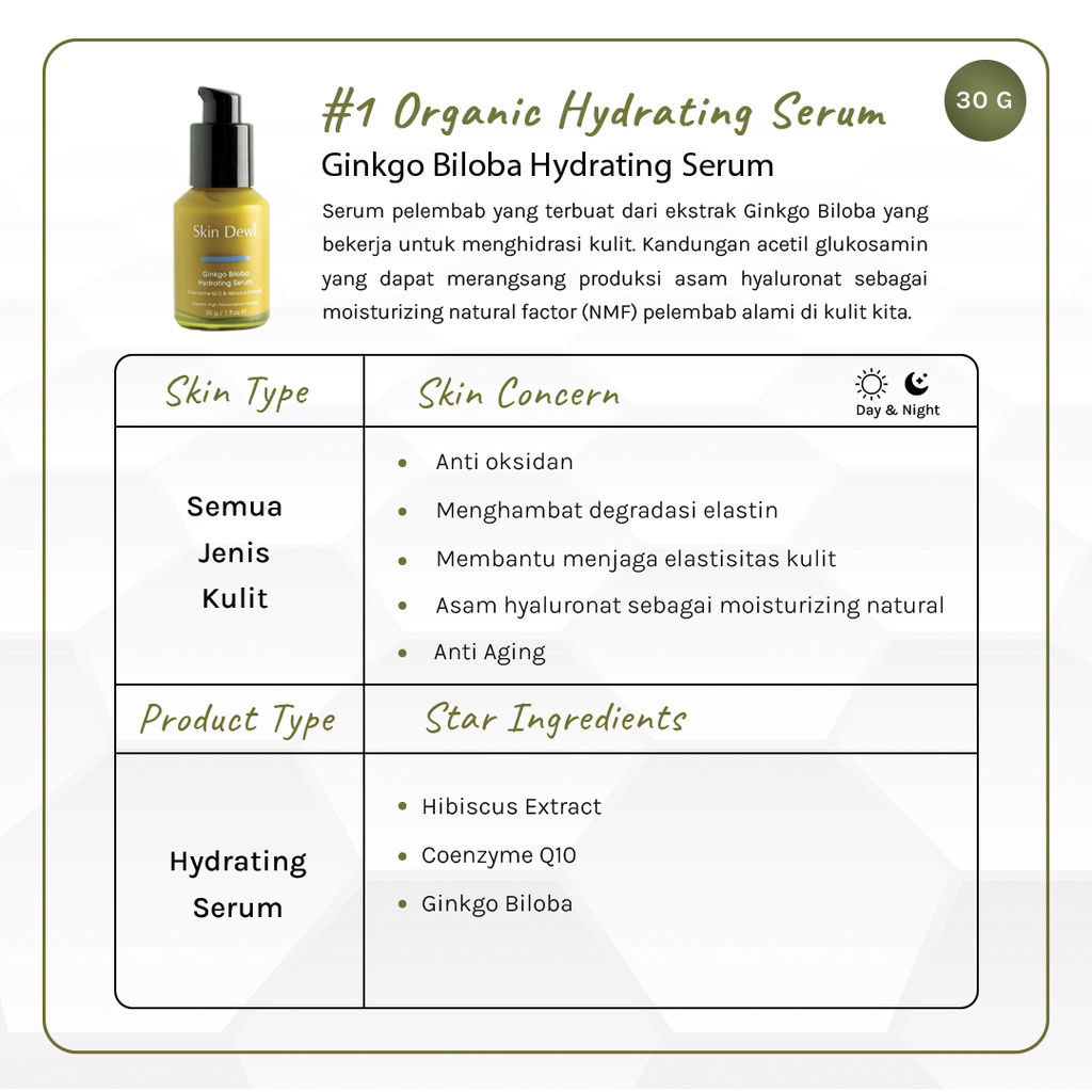 Skin Dewi - Ginkgo Biloba Hydrating Serum | Serum Anti inflamasi dan antiaging/Memperbaiki Kulit/ Serum Pemutih Wajah