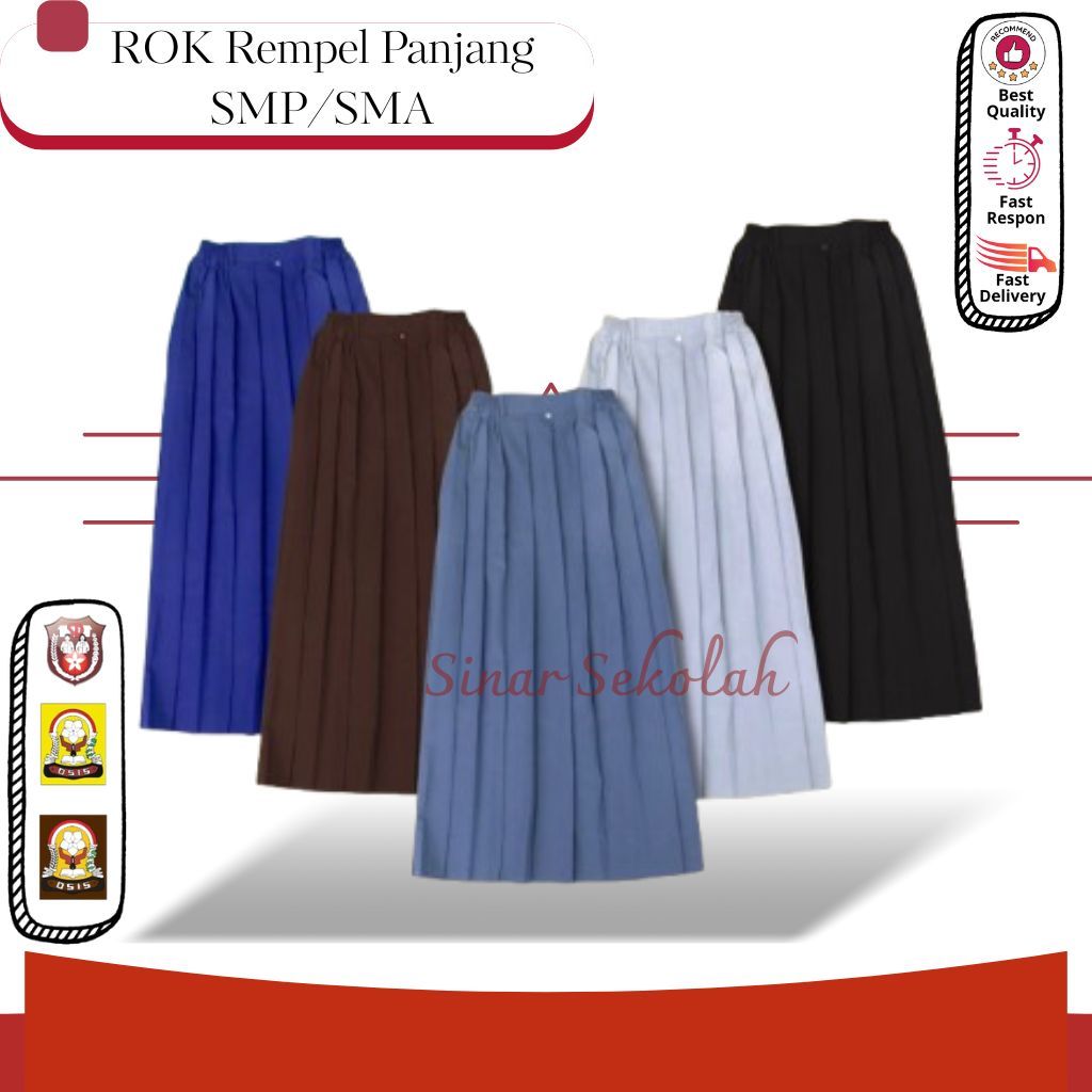 Seragam Sekolah SMP SMA Rok Panjang Rempel Limpit Biru Abu-abu Putih Hitam Coklat