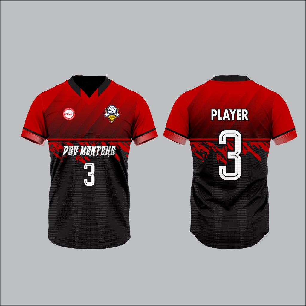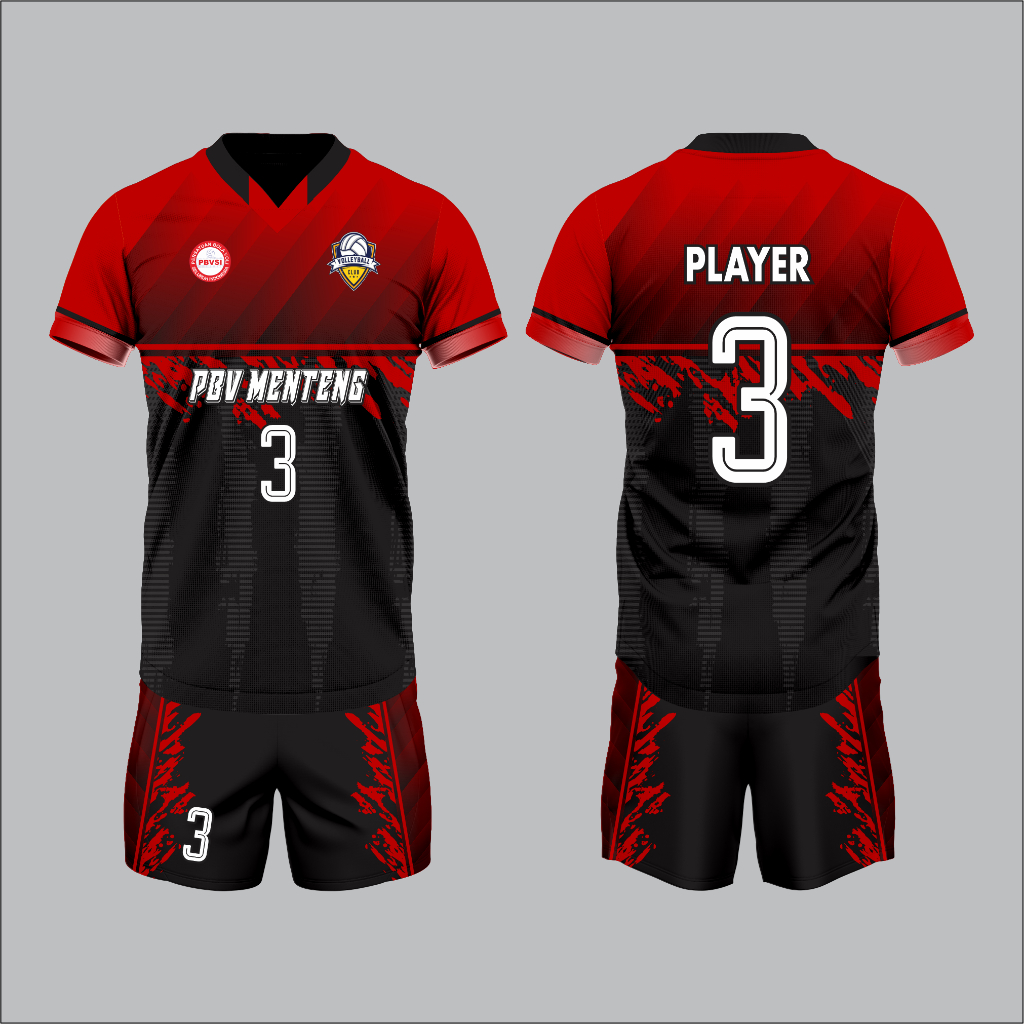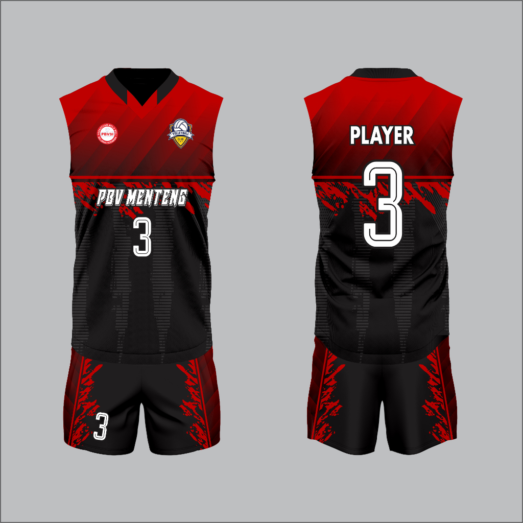 Jersey voli / volly pria wanita full printing gradasi merah hitam free nama nomor dan logo