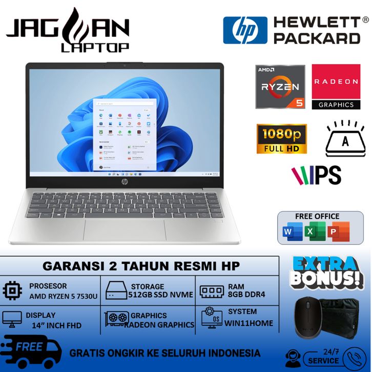 Laptop Laptop Gaming HP 14 EM0019AU AMD Ryzen 5 7530U 8GB 512GB Ssd FHD Win 11 Home Original