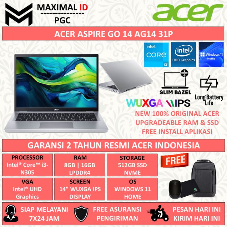 Laptop Laptop Acer Aspire Liite 14 AL1 14M Intel I3 1215U 16GB 512GB 14.0 WUXGA Windows 11 Home TERLARIS