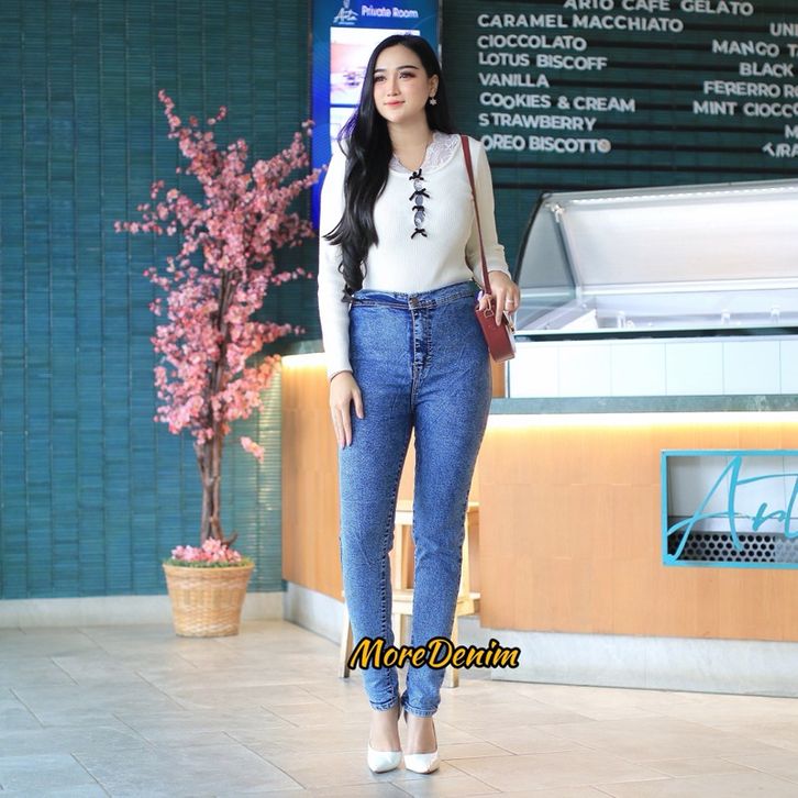 (Gratis Ongkir) CELANA HIGHWAIST WANITA POLOS JEANS PENSIL SKINNY CEWEK
