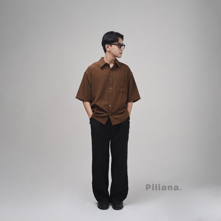 Kemeja Pria Lengan Pendek Oversize Brown - Kemeja Boxy