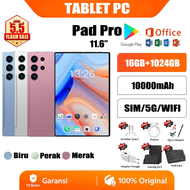 Tablet PC 11.6 inch Tab RAM 16GB+1024GB Tablet Android Tablet Murah Layar Full Screen Layar Besar Wifi 5G Dual SIM Tablet Tablet Pembelajaran Tablet Gaming kantor Cuci Gudang