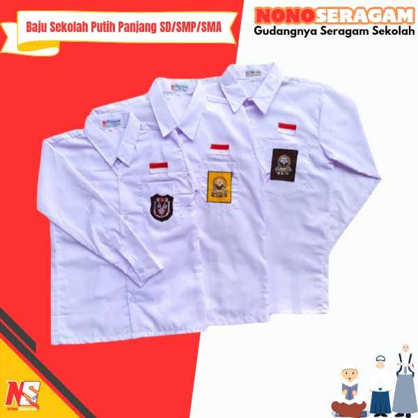 Baju Putih Kemeja Seragam Sekolah SD SMP SMA Lengan PANJANG Putih Tebal Oxford Logo Bordir