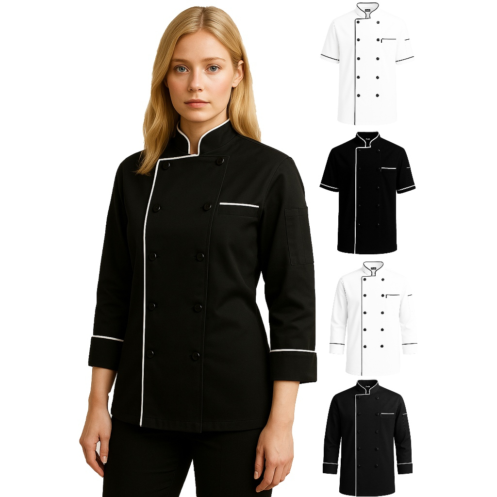 Srm Baju Koki / Chef Work Lis Body Fit Unisex Bahan Drill Uk Size
