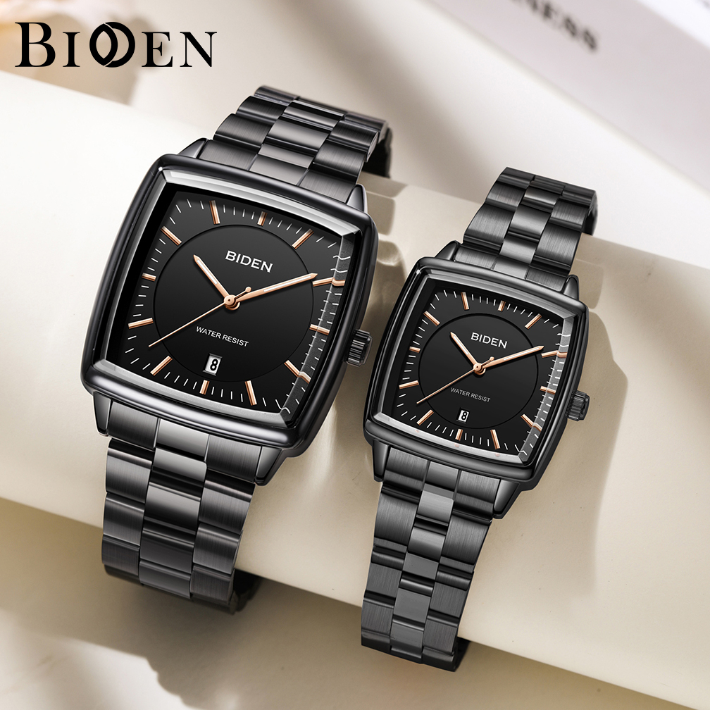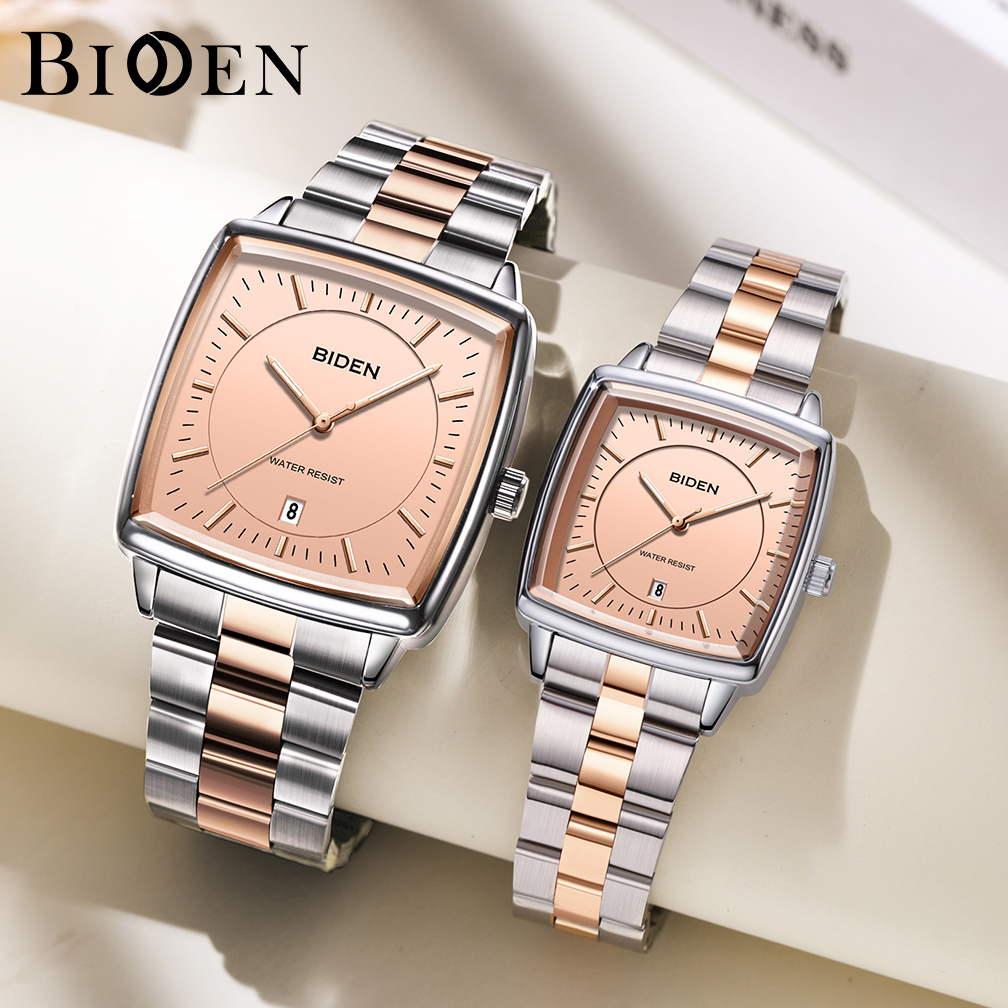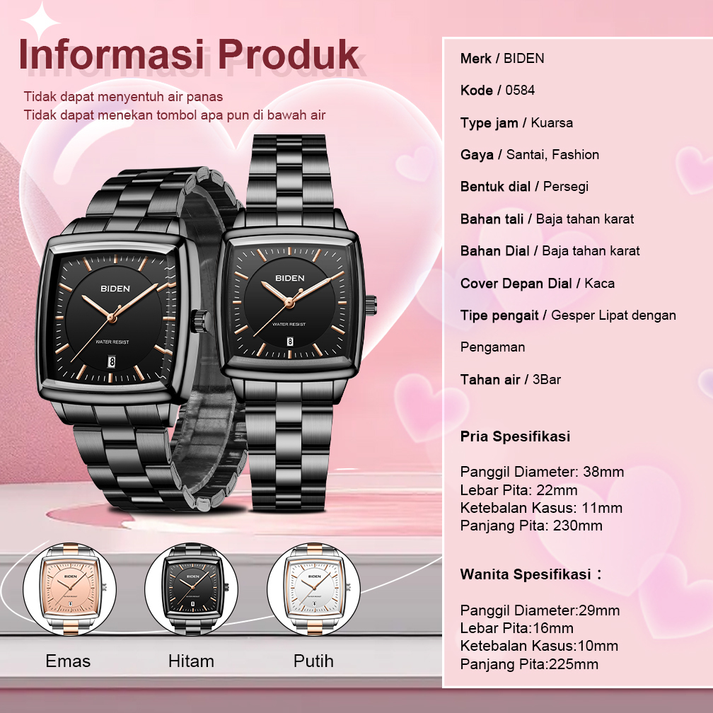 BIDEN Jam Tangan Couple Anti Air Original Fashion Multifungsi Kalender Luminous Tali Stainless Steel Jam Tangan Pria