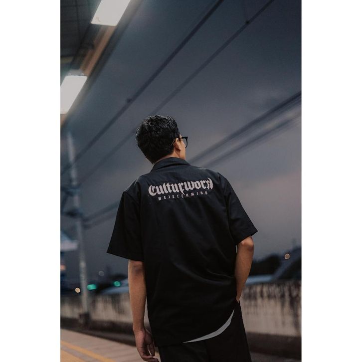Kemeja Pendek Pria Hitam Weister Workshirt - Culture