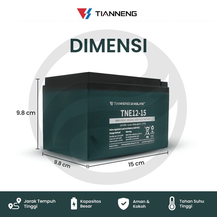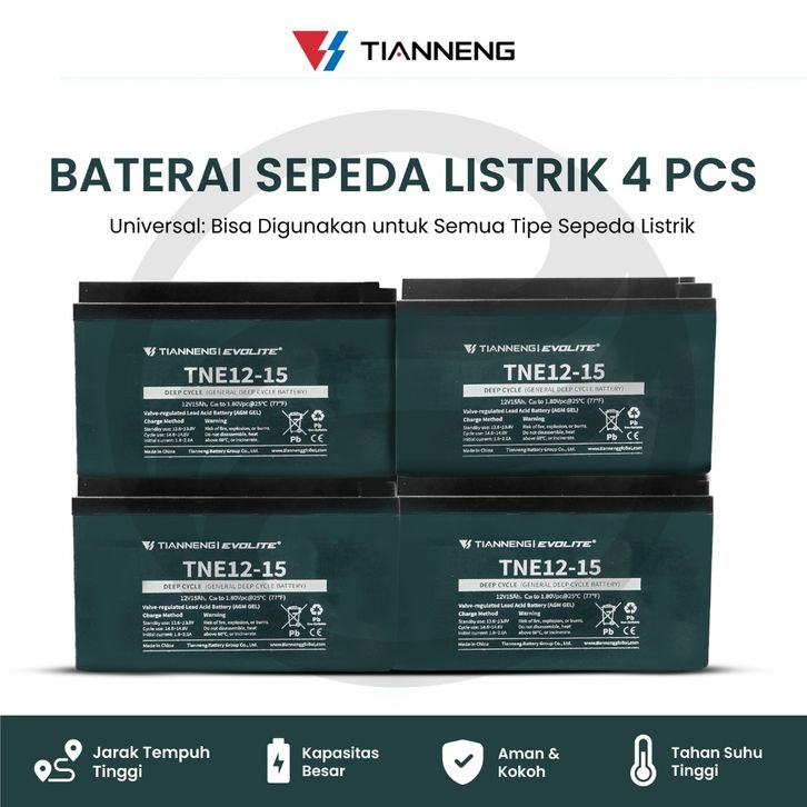 Baterai / Aki Sepeda Listrik Premium Tianneng Evolite 48V 15AH Original Isi 4 Pcs Bergaransi Resmi