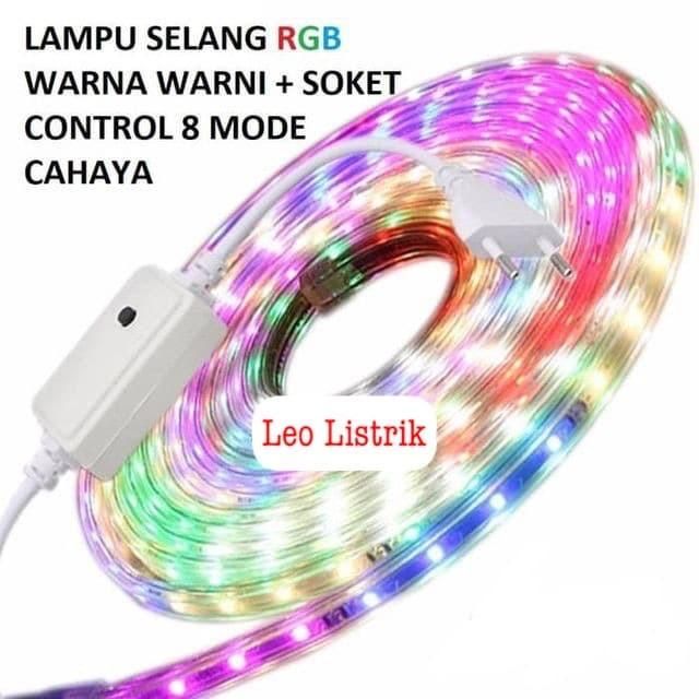 LAMPU LED STRIP SELANG WARNA WARNI 3528 2835 220V + ADAPTOR 5050 - RGB + SOKET 6M CL