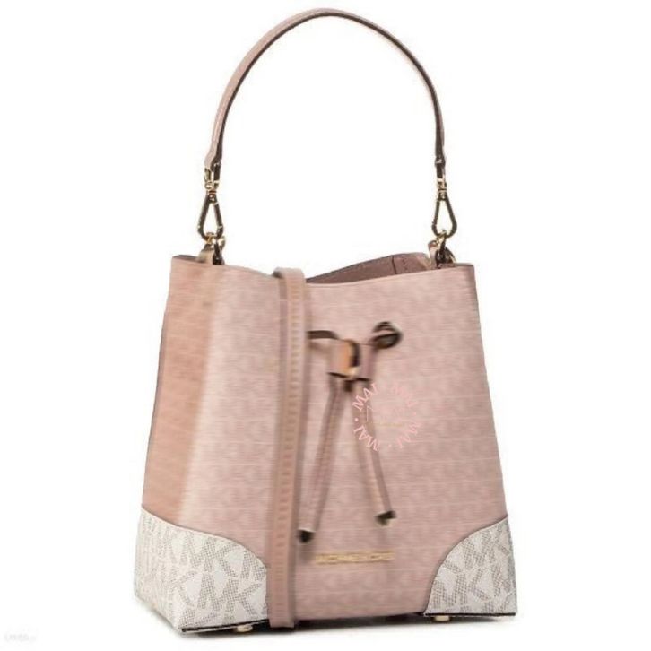 Emka Mercer Gallery Convertible Bucket Crossbody Bag - Pink White Canvas