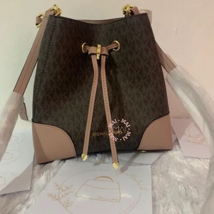 Emka Mercer Bucket Bag Logo Medium/MK Shoulder Bag/MK Woman Bag - Brown Pink