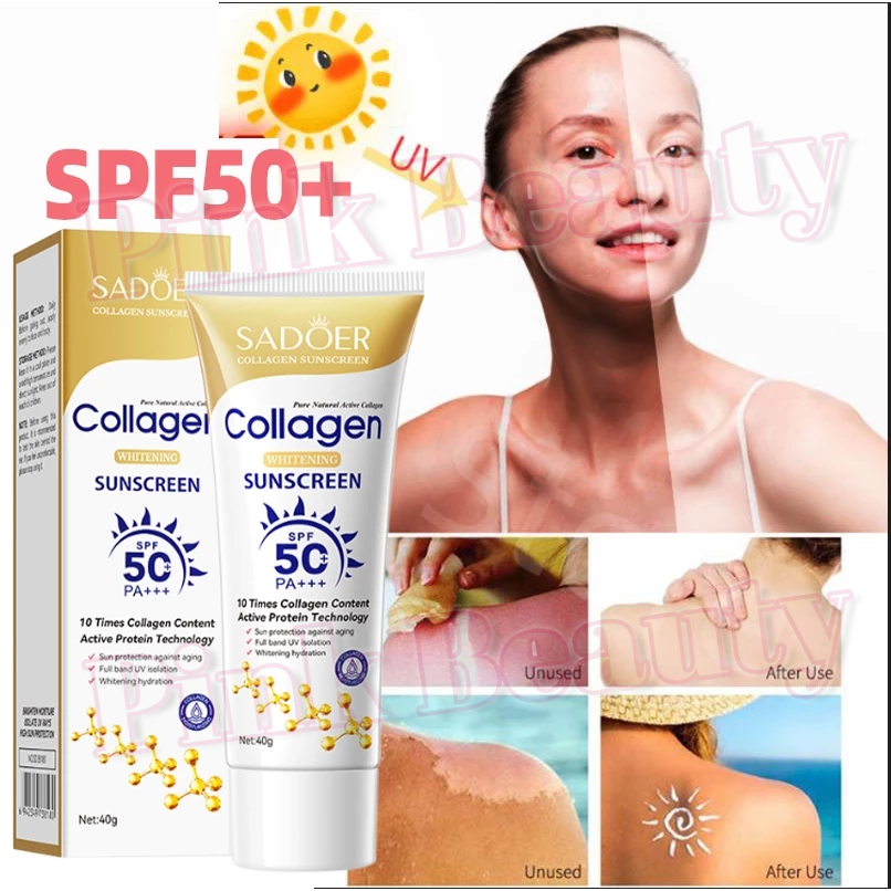 Collagen Whitening Sunscreen Kolagen Pemutih Glowing Up Sunblock Cream SPF50+ PA+++ Wajah Dan Badan Sunscreen Sun Protec