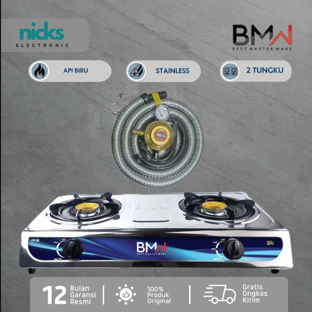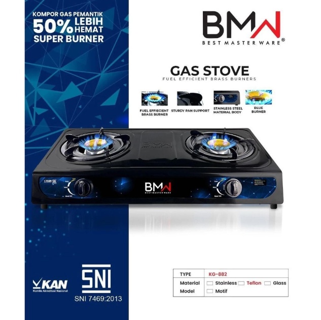 BMW Kompor Gas 2 Tungku Stainless Steel SNI KG-882S