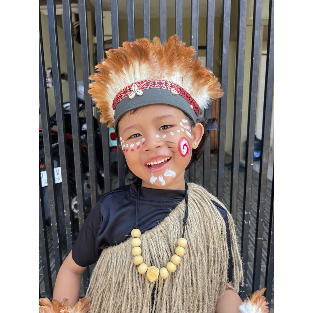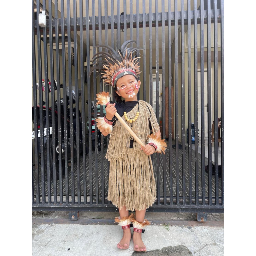 Acc tangan bulu, Rumbai dada anak, Topi anak & dws, Acc kaki bulu, Rok goni S, Rumbai dada dws, Rok goni M, Tongkat, Mahkota anak & dws, Kalung