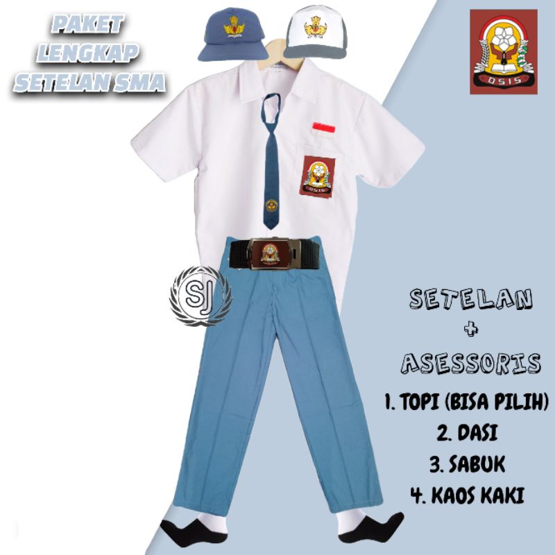Seragam sekolah setelan super lengkap baju pendek & celana panjang SMA