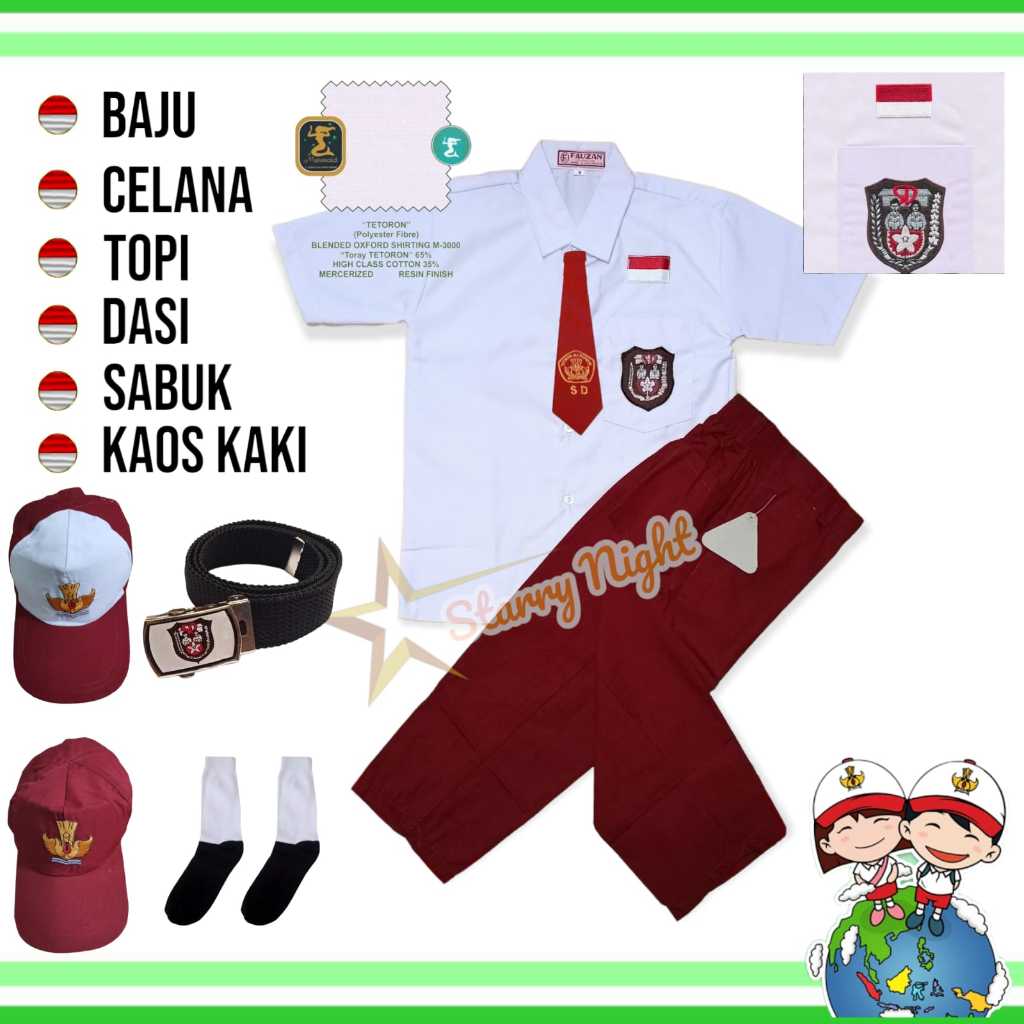 SETELAN SERAGAM MERAH PUTIH PENDEK PANJANG