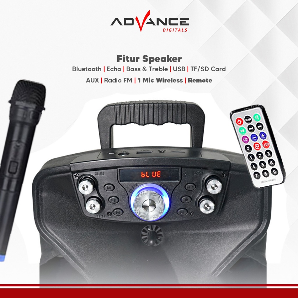 [Star] ADVANCE Wireless Bluebooth Speaker H-801N 8 inch Free MIC Portable 2Xtra Power Sound